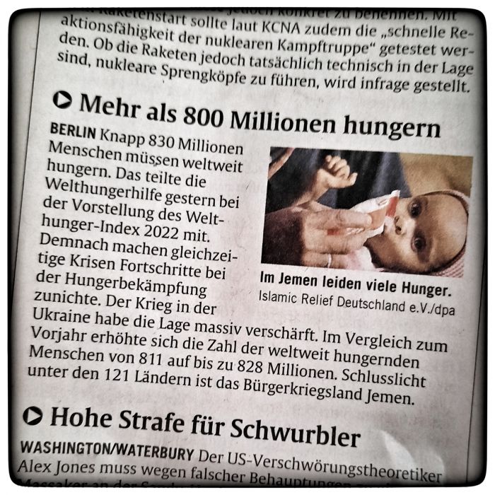 828 Millionen hungernde Menschen, das sind 828 Millionen Schicksale, die einst mit der Geburt recht hoffnungsfroh begonnen haben.