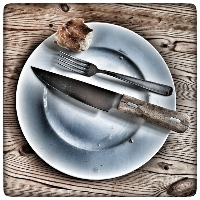 Wir nehmen ihnen das Essen vom Tisch und laden es uns auf die Tafeln, bis die sich biegen. Und was in unserem Wanst keinen Platz mehr findet, das verfüttern wir an die Schweine oder werfen es auf den Müll.