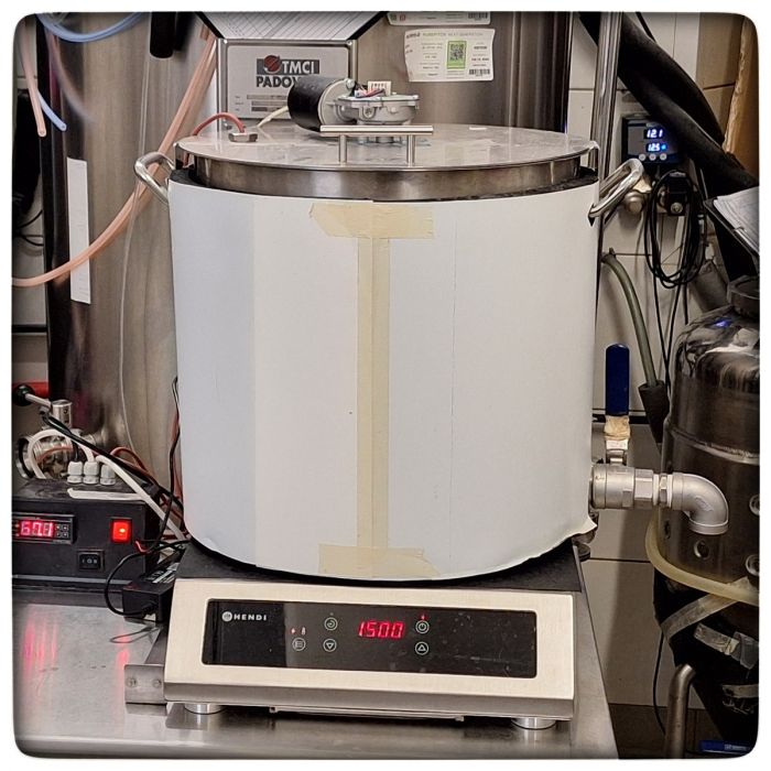For me the day starts at the mash kettle. Just as I was used to. Heat up the water to the mash temperature. Same as always? No we had two mash kettles. A big one with about 170 liters and a small one with another 70 liters. Gosh. That means a lot of mathematics and physics as well.