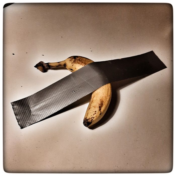 Irgendwer hat nun also 110.000 Euro für eine Banane mit Gaffa-Tape bezahlt. In dem Sinne eigentlich nur für die Idee. Für das Gefühl einen Batzen Geld für echt was tolles, einmaliges ausgegeben zu haben. Mit der tiefen inneren Gewissheit, dass die Banane nach vielleicht zwei Wochen Matschepampe ist.
