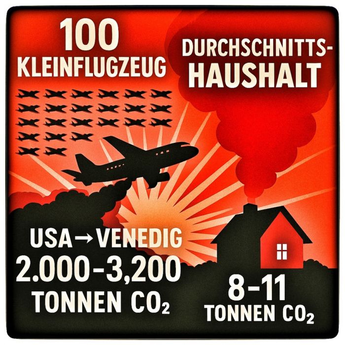 Wenn von den 100 jedoch 95 mit dem Flieger kommen, dann verursachen die an einem Abend mal eben so viel CO2 wie 300 Haushalte in einem Jahr.