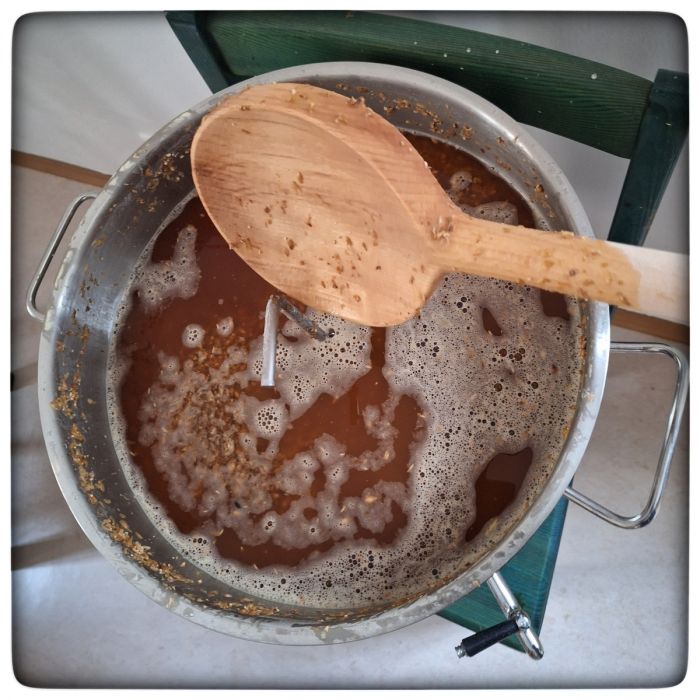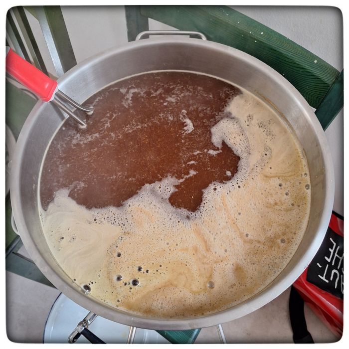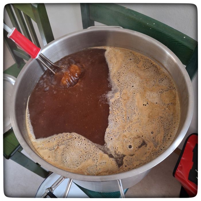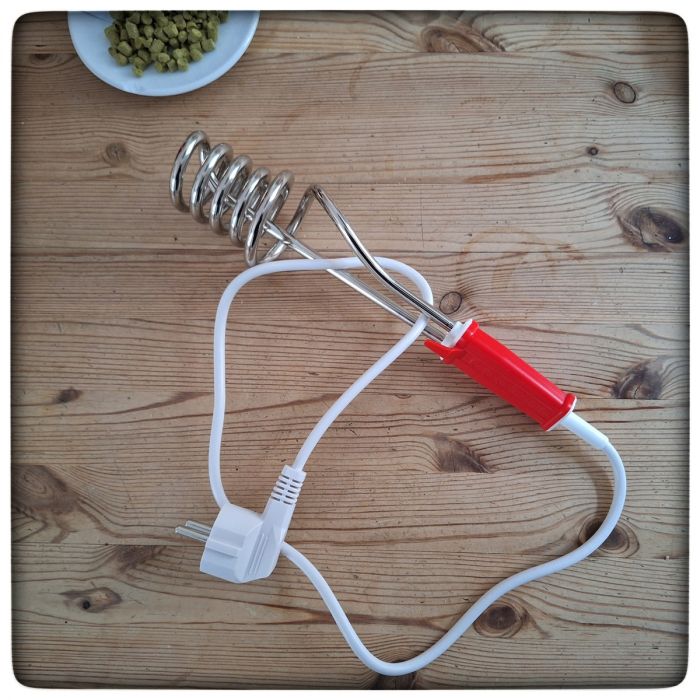 Jedenfalls funktioniert das mit dem Tauchsieder leidlich gut. Der Sud siedet und ist bereit für den Hopfen.