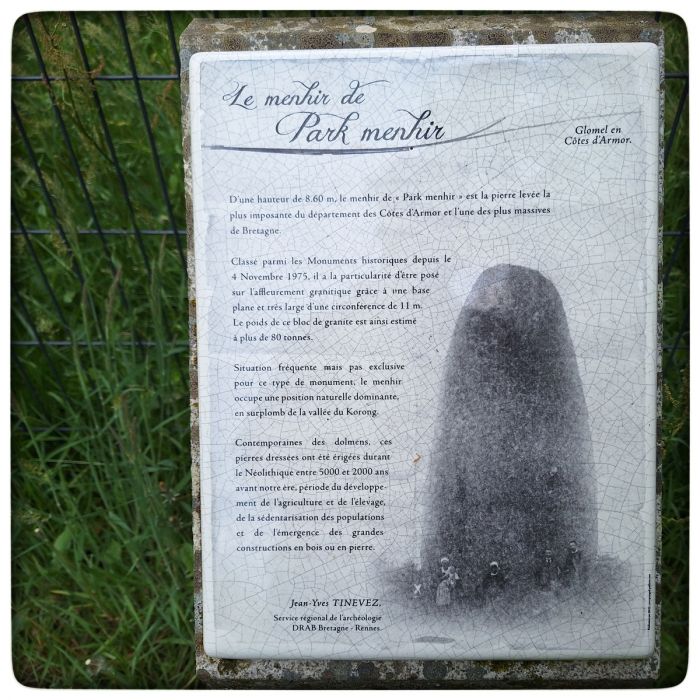 Allgemein bekannt ist, dass Obelix aus der Bretagne stammt und auch hier seiner Arbeit nachgegangen ist. Entsprechend finden sich am Wegesrand immer wieder Zeugnisse seiner Arbeit. Zum Beispiel hier der Menhir de Guihalon: