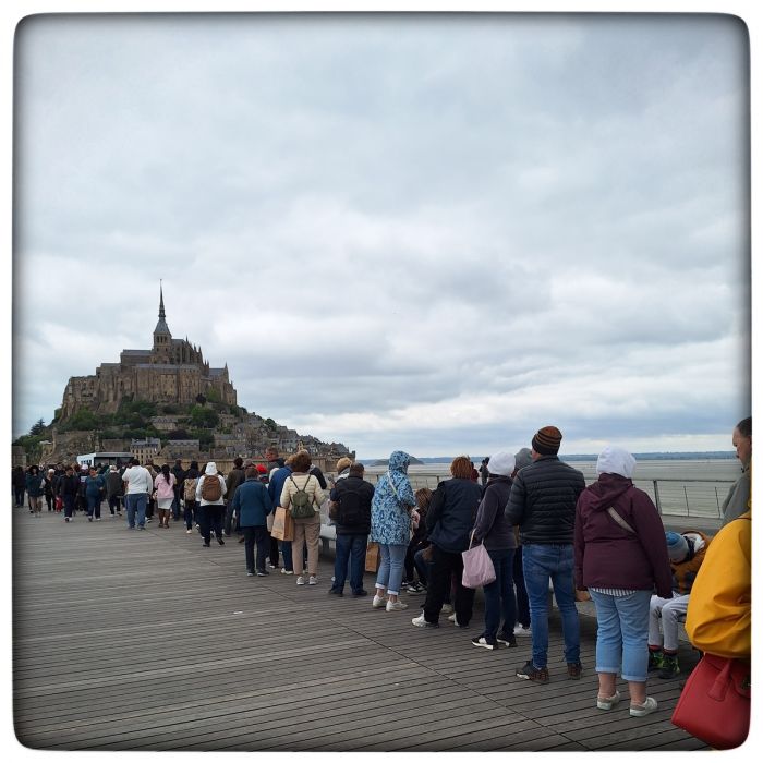 Also da ragt ein Felsen aus dem Wattenmeer mit einem Kloster drauf und einem kleinen Dorf drum rum. In dem Dorf leben um die 20 Menschen. Ein vielfaches davon arbeitet dort und Touristen schieben sich zu tausenden durch die schmalen Gässchen. Ich würde gerne nicht dort leben müssen. Auch nicht arbeiten. Schlimm genug, dass ich mich mit den anderen Touristen zusammen dort getummelt habe. Aber ich kann euch sagen, das Tummeln hat sich gelohnt. Die Gässchen, Treppchen, Terrassen, verwinkelt und verwunschenen Orte sind einen Besuch wert.