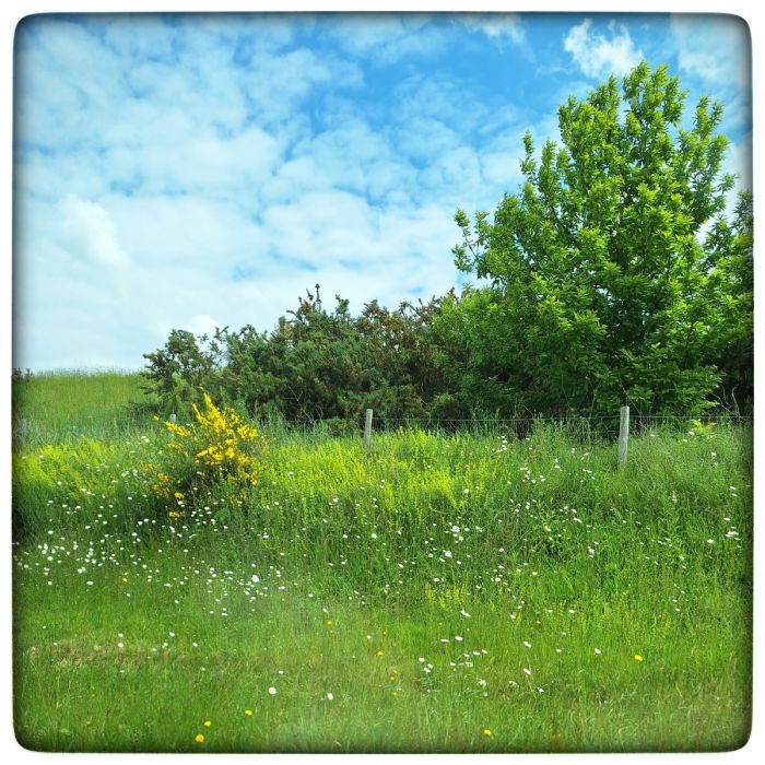 Das könnte jetzt irgendwo in Oberbayern sein. Ist es aber nicht. Es ist Loiron-Ruillé. Woher ich das weiß? Ganz einfach, ich bin gerade daran vorbei gefahren. Und weil ich gerade auf dem Weg in die Bretagne bin, ist das eben nicht Oberbayern.
