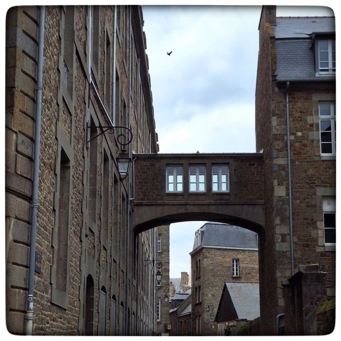Die Altstadt von Saint-Malo wird landläufig Intra-Muros gerufen. Warum? Weil sie sich hinter den Mauern befindet. Eigentlich ganz einfach. Diese Altstadt ist sicher das, was man als malerisch bezeichnen möchte. Zumindest, wenn der Malkasten ein recht beschränktes, auf braun töne fixiertes Repertoire umfasst. Intra-Muros ist nämlich wie die Muros selbst komplett aus Stein errichtet. Stein rechts und links. Stein vorne und hinten. Stein auch unten. Oben? Nein, da ist kein Stein, da ist Himmel.