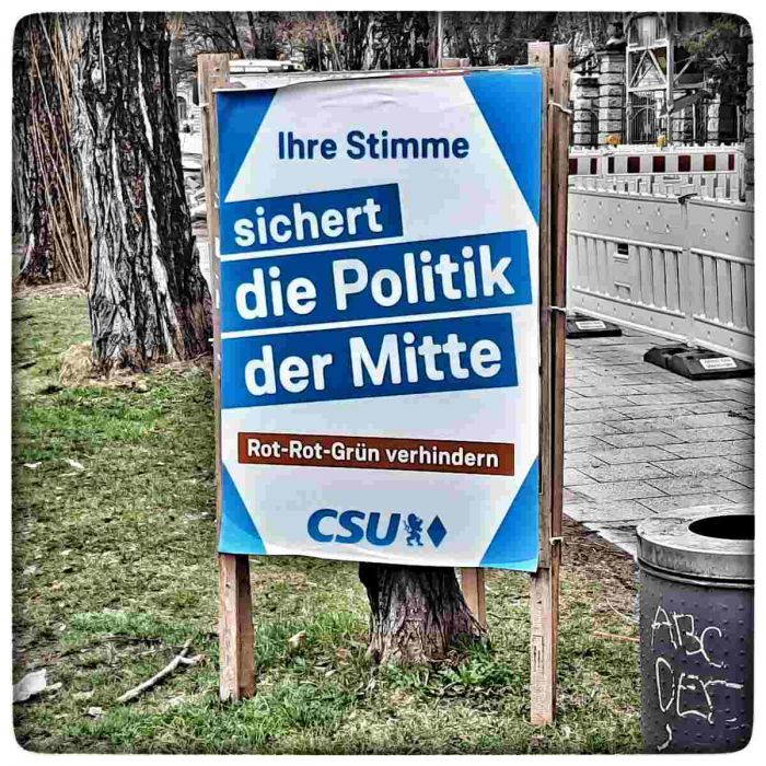Der Wahlkampf neigt sich dem Ende und der CSU schwimmen die Felle davon. Jetzt beginn sie ihr wahres Gesicht zu zeigen. Nicht mehr das nette Lächeln einer Kristina Frank versucht zu gewinnen, sondern abgeschmackte Parolen aus der Mottenkiste der kalten Krieger prangen auf den Wahlplakaten.