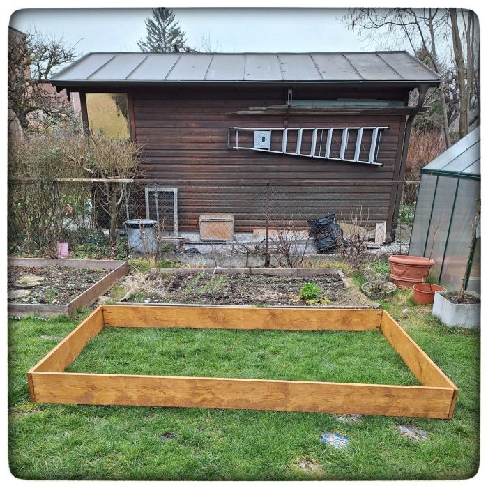 Der Rahmen ist fertig. Jetzt fehlt etwas gute Erde und... ja, genau, der Frühling. Das mit der Erde, das bekomme ich hin. Auf den Frühling... auf den muss ich warten, wie wir alle.