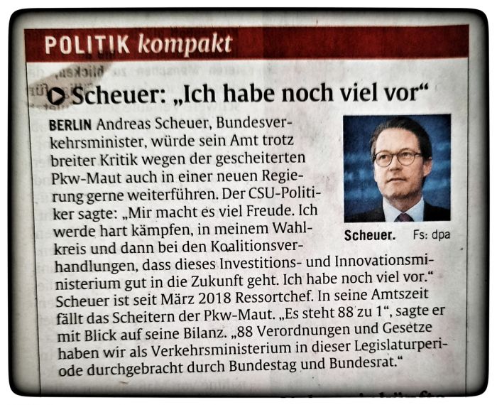 [n-tv.de]: Scheuer würde gerne Minister bleiben