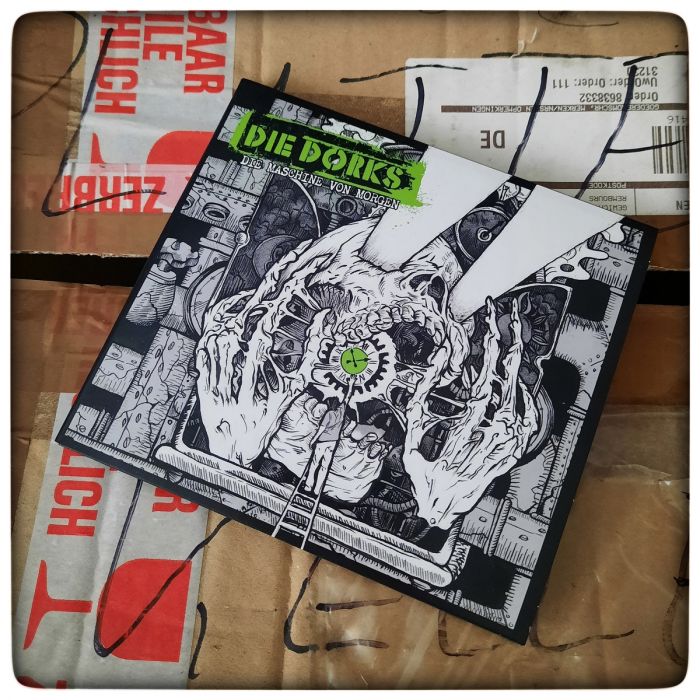 Um jetzt meine erneute Aufmerksamkeit auf die Dorks zu lenken, hat sich ein Spezl unter falschem Namen in die Band eingeschlichen. "Pät Durango" nennt er sich. Wobei doch jeder weiß, dass es sich um "Toni Weißegger" handelt. Aber egal. Jedenfalls hat mir dieser Herr Durango ein Exemplar des neusten Dorks Machwerk "Die Maschine von morgen" in den Briefkasten laboriert. Eine Gefälligkeitskritik hätte er gerne (auch das ist nicht wahr, aber der Spannungsbogen...).