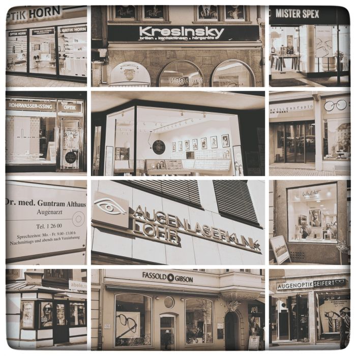 Beim Bummel durch die Würzburger Altstadt springt schnell ins Auge, dass es unheimlich viele Optiker gibt. Also Brillenläden. Bei Fielmann und Apollo denkt man sich noch nichts. Vielleicht "ach ja, wie bei uns". Einen Laden weiter dann schon "Noch einer. Den gibt's bei uns nicht. Etwas Lokalkolorit. Schön." Spätestens nach dem zehnten ist man etwas alarmiert. Sehen die Würzburger wirklich so schlecht? Ist das ansteckend? Sollte ich mich besser schnell vom Acker machen?
