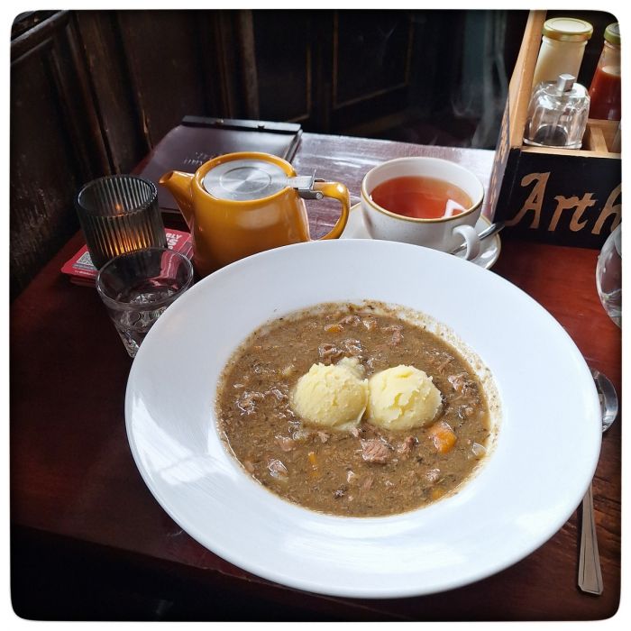 Entsprechend gefreut habe ich mich, am letzten Urlaubstag im Arthur's endlich einen Laden gefunden zu haben, der Irish Stew auf der Karte hatte. In den Pubs steht das Nationalgericht für gewöhnlich nicht auf der Karte.