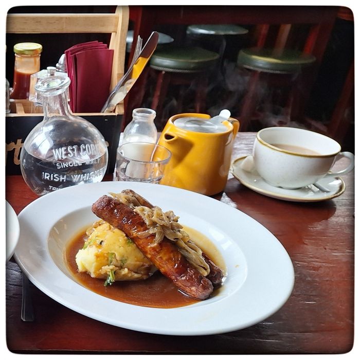Bratwürste in Irland sind ein wenig speziell. Sehr hell, von der Konsistenz etwas wabbelig, wenig gewürzt und mit einem recht eigenen Geschmack.