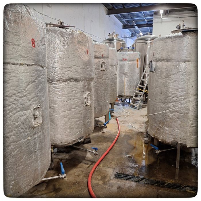Auf die Frage, ob es möglich wäre, außer der Reihe eine Führung zu bekommen, nahm uns der freundliche Chris McDonach - Brauer mit Leib und Seele - unter seine Fittiche und führte durch die Brauerei. Lüpfte Deckel um Deckel. Zeigte Maischebottich, Kochtopf und die Lagertanks. Erklärte welches Malz Verwendung findet - und ja, es ist auch Weyermann dabei - und wo es her kommt. Dabei behielt er immer ein Auge auf dem aktuellen Sud, um den Kochbeginn nicht zu verpassen. Auch ertrug er gelassen meine laienhaften Hobbybrauerweisheiten. Zum Abschied wartete er mit einer Palette Dosen und allerlei Merchandising auf.