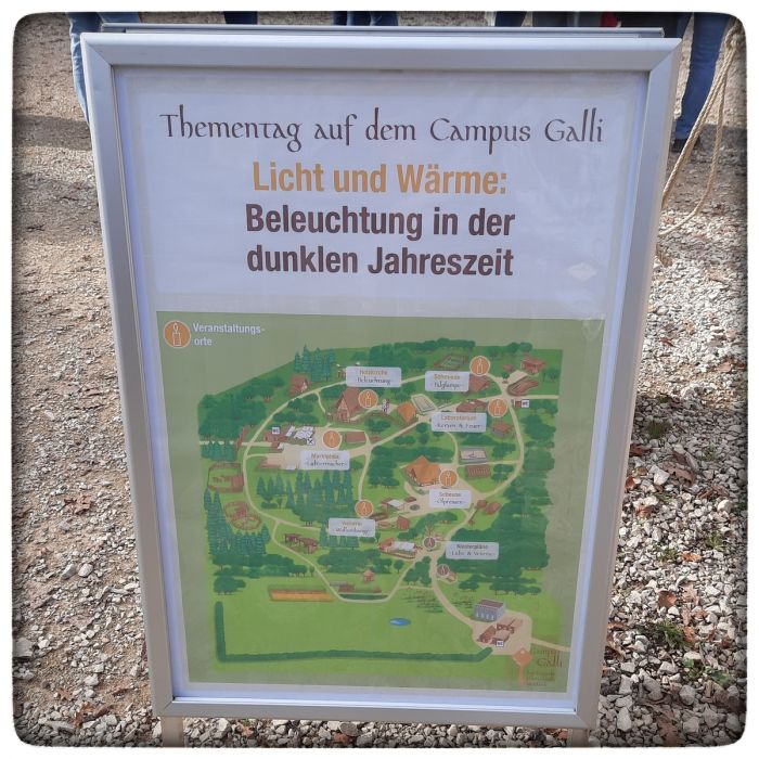 Just in diesem Jahr - wie eine Vorahnung - bietet Campus Galli eine Führung rund um Licht und Wärme (im Mittelalter) an. Da geht es um Kerzenziehen, Kienspan, Talglampen und Lampenöl. Und wie das alles in Holzhäusern funktioniert hat. Mit Strohdächern. Ohne Feuerpolizei.