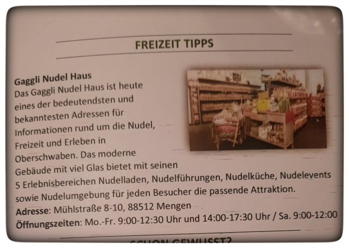 Ich finde "5 Erlebnisbereiche Nudelladen, Nudelführungen, Nudelküche, Nudelevents sowie Nudelumgebung" schon sehr groß. Ich war versucht, da hin zu gehen... nein, war ich nicht. Aber gebt zu, dass hat was. Sind wir nicht alle irgendwie was mit Nudel?