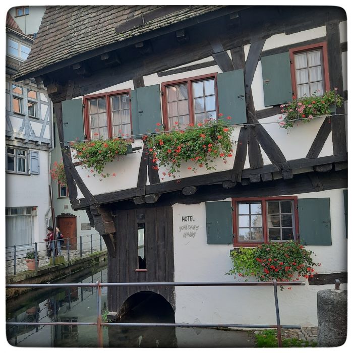 Auch sonst gibt es zu Ulm eine Menge zu erzählen. Zum Beispiel, dass da einiges schief ist in dieser Stadt. Da gibt es den schiefen Turm von Ulm. Der hat einen Überhang von 2 Metern. Und dann gibt es das Hotel Schiefes Haus. Warum das so heisst, ist unschwer zu erkennen.