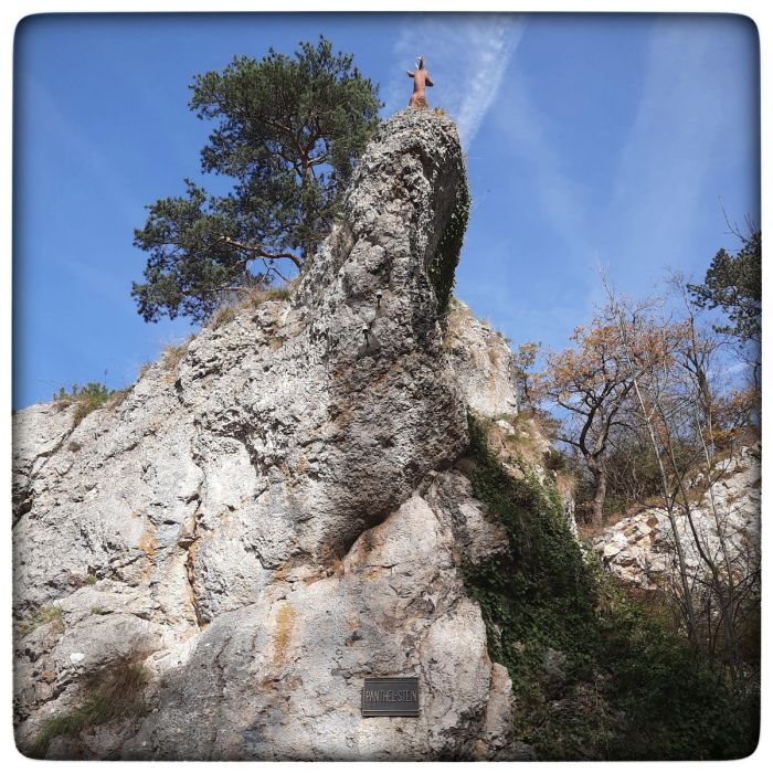 Ich muss sagen, dieser Panthelstein hat mich schon irgendwie beeindruckt. So mitten unter Steinen, nein eigentlich sind das schon mehr Felsen, da nimmt ein Panthelstein schon eine besonders herausragende Position ein. Besonders wenn er auch noch heraus ragt. Und wenn dann auf der Herausragung auch noch ein Hirsch sitzt. Respekt.