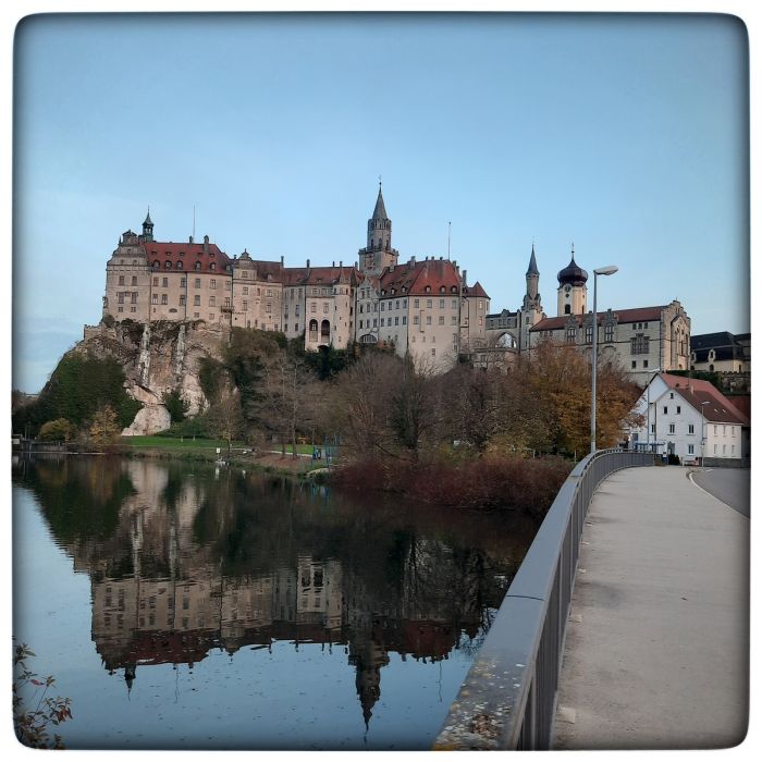 Sigmaringen ist schon recht beschaulich. Auf der einen Seite hübsch anzusehende mittelalterliche Häuser. Auf der anderen Seite eine breite Palette von Imbiss und Lieferdiensten. Was eine moderne Kleinstadt eben so ausmacht. Und auf der dritten Seite das Schloß.