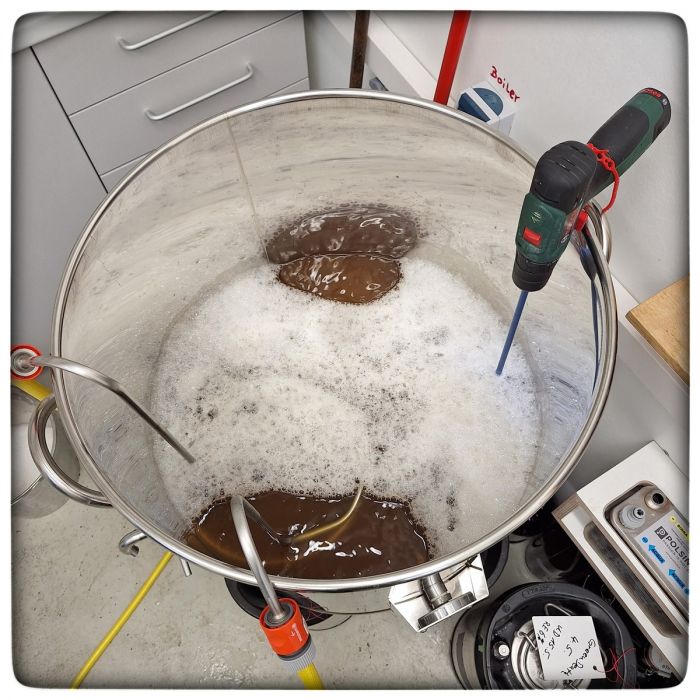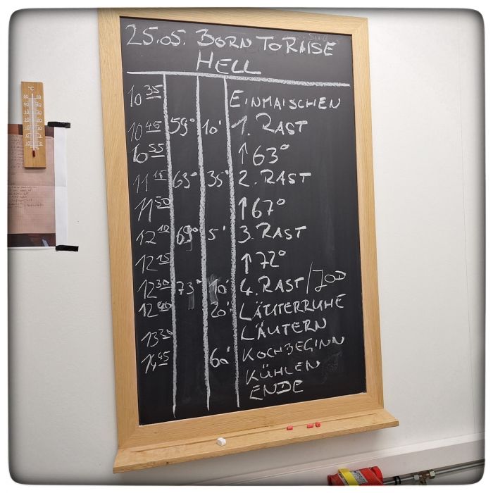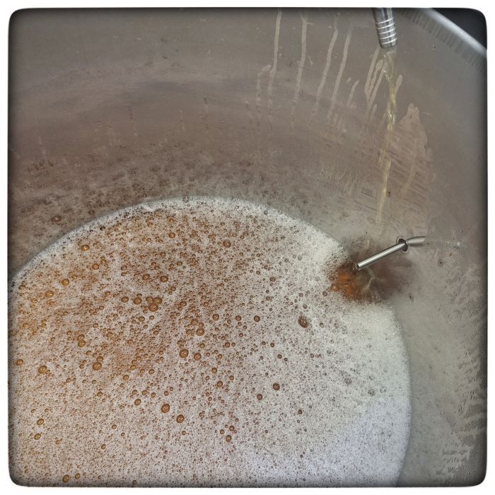 Diesmal... ich denke, es war viel Hauptguss und viel Nachguss. Vielleicht wird das Bier damit etwas dünn. Wir werden sehen.