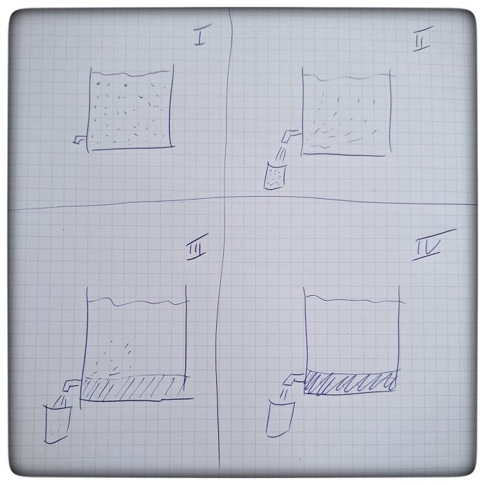 Wenn man zum allerersten Mal vor dem großen Kessel steht und einem gesagt wird, man solle jetzt läutern. Und dazu solle man die Würze so lange immer wieder in den Messbecher und zurück in den Maischebottich laufen lassen, bis die Würze klar läuft, dann füllt such die Denkblase mit Fragezeichen. Wie soll denn das gehen?