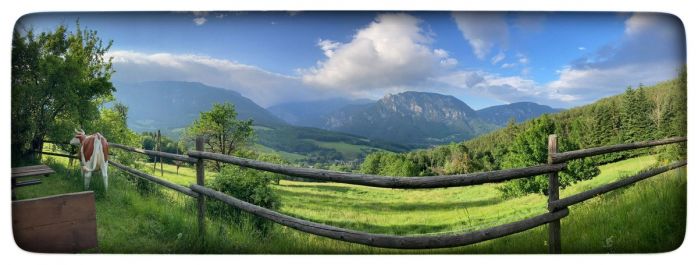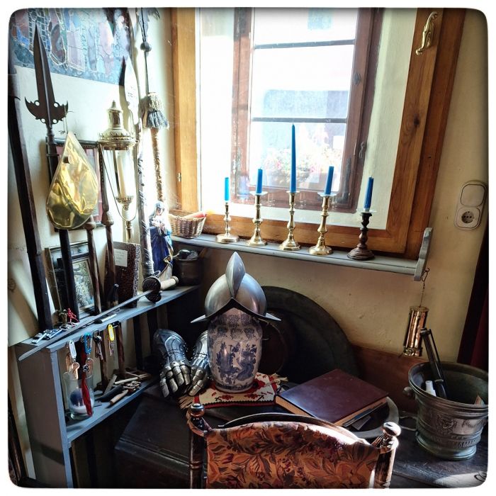 Betritt man die Pension Winkler... Mittelalter, ganz klar. In der Empfangshalle wird man vom Duft von Büchsenfett umwabert. Überall hängen oder liegen Schwerter, Rüstungsteile, Pieken. Auf einem thronähnlichen Sessel erwartet der Hausherr seine Gäste. Die Gastfreundschaft in Person reicht er durchgeschwitzten Radlern erst ein kühles Wasser, bevor er zu den Formalitäten schreitet.