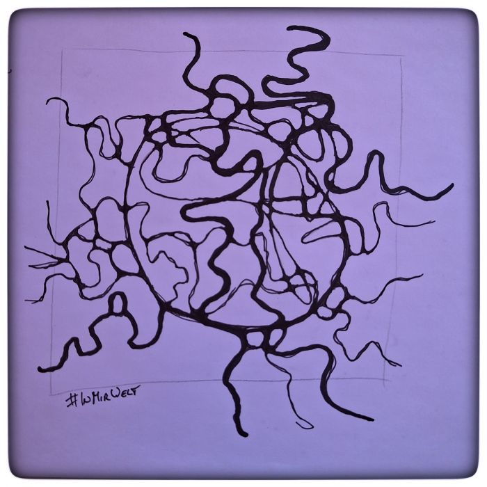 Ich denke, das neurographische Zeichnen hat viel mit dem Astralkörper zu tun. Und mit Empathie auch. Oder einfach nur mit Phantasie. Jedenfalls gibt es viele verschiedene Zugänge. Und es gibt einen Eingang und einen Ausgang. Der Eingang ist eine Blockade, ein Problem oder auch nur eine Frage, über die man Klarheit gewinnen möchte. Der Ausgang ist ein großes Abenteuer. Den zwischendrin wird gezeichnet. Neurographisch. Das macht was mit einem. Oder auch nicht.