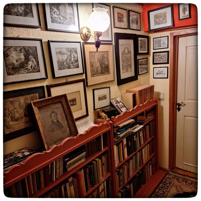 Wobei "schreiten" nicht ganz richtig ist. Ganz so gut zu Fuß ist er nämlich nicht. Er händigt den Haustürschlüssel aus und verabschiedet sich vor der letzten - zugegebenermassen recht engen - Stiege mit den Worten "oben rechts ist ihr Zimmer". Und was für ein Zimmer.