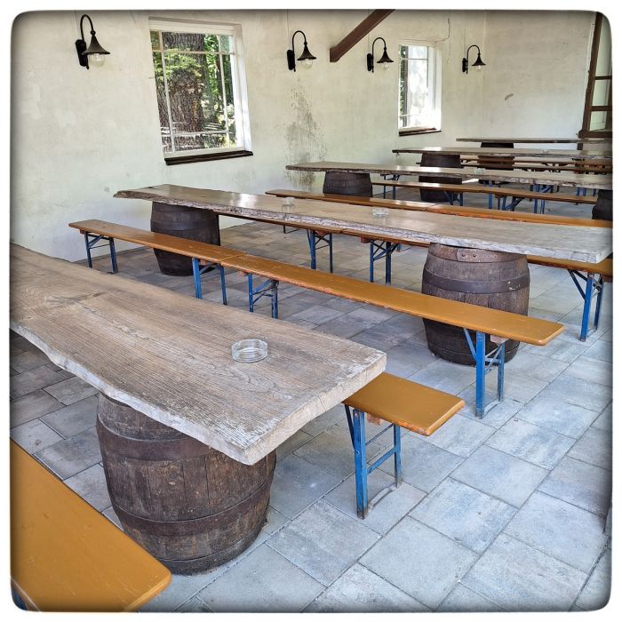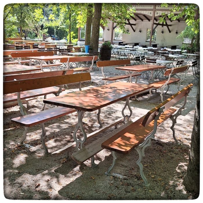 Wenn man aus versehen in eine Reisegruppe älterer Herrschaften gerät und dann vor dem geschlossenen Biergarten steht, dann hebt eine vielstimmige Kakophonie an, "die haben geschlossen", "die machen erst um 16 Uhr auf", "es ist aber doch Samstag und da machen die um 15 Uhr auf". Den Nachzüglern schallt es entgegen "wir müssen umdisponieren, die haben zu", das scheint auch beim 10ten Mal nichts an Gaudium eingebüßt zu haben. Erst als jeder alles gesagt hat, kommt jemand und öffnet das Tor zum begehrten Bierausschank.