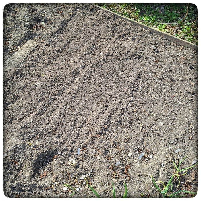 Hie könnt ihr Radieserl sehen. Also im Moment könnt ihr sie noch nicht sehen, weil die noch unter der Erde sind. Und es sind nicht nur Radieserl. Da rechts, das sind Radis. Aber ganz ehrlich, ich kann die gerade auch noch nicht auseinander halten.