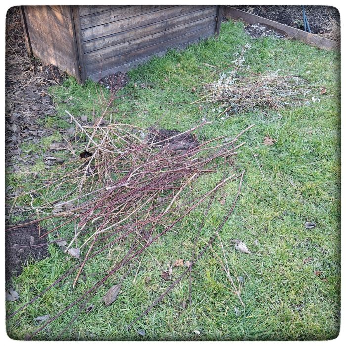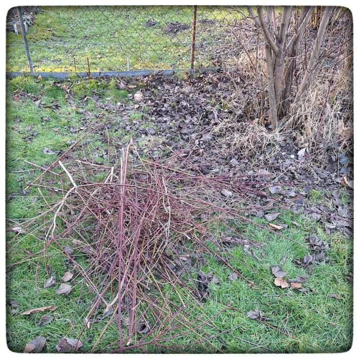 Rosenschere, Heckenschere, Astschere und die Säge, heissa, welch ein Geschnippel. Im ganzen Garten liegen Haufen abgetrennter Zweige und Zweiglein.