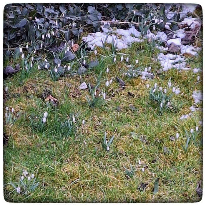 Es ist schon anzusehen, wie der Garten erst weiß... dann weiß... und dann wieder weiß... eh? Ach so, ja, erst Schnee, dann Schneeglöckchen, dann Gänseblümchen.
