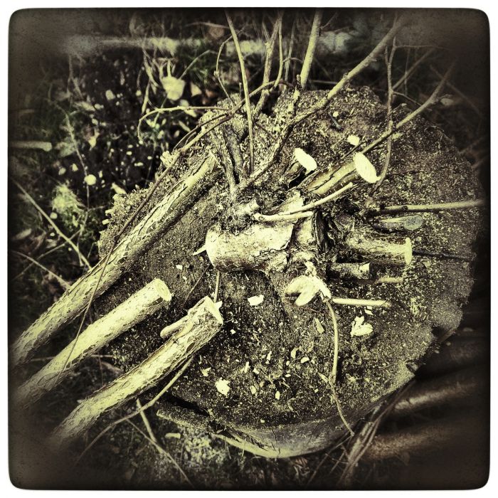 Was sich nicht für Stangen eignet wird klein gehackt. Reisig zum Anfeuern. Kleinholz für Feuerschale und Raketenofen.