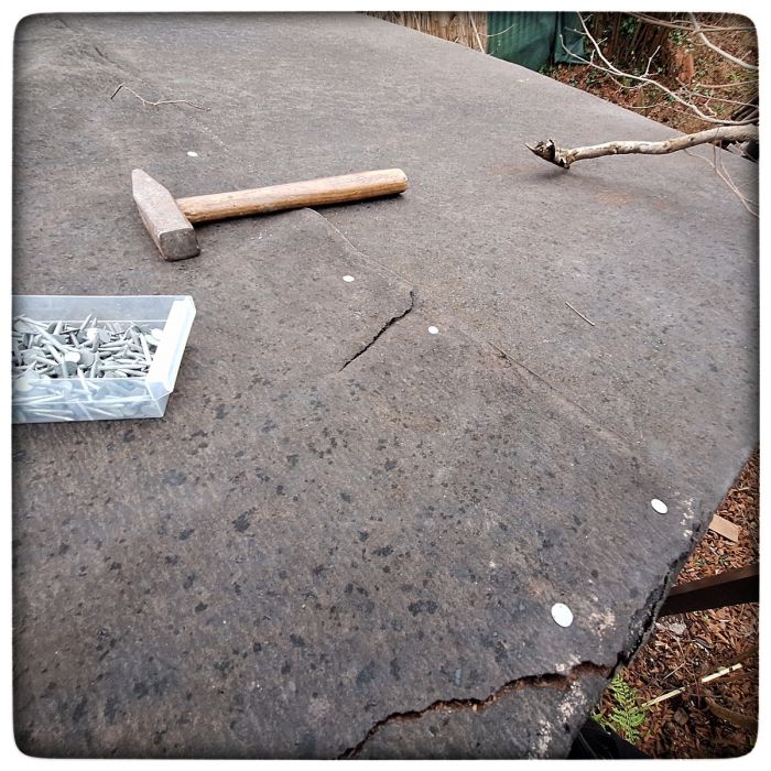 Das stimmt ja so gar nicht. Herbststürme treiben auch im Winter ihr Unwesen. Im Januar zum Beispiel. Und bei uns im Garten zum Beispiel. Und da decken sie schon mal den Schuppen ab. Nicht zuletzt weil die Dachbedeckung über die Jahre etwas marode und bröselig ist.