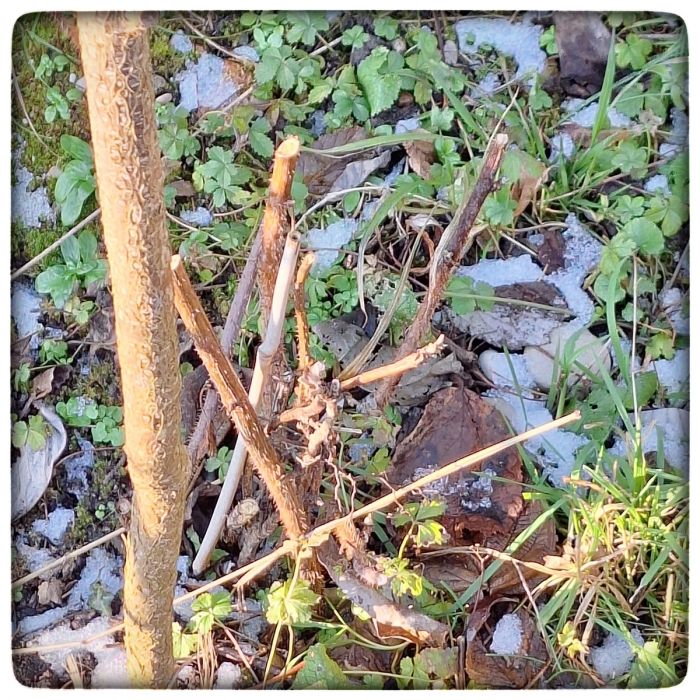 Habt ihr die Himbeere vermisst? Für die ist endgültig Feierabend. Die ist zurückgestutzt bis fast zum Boden. Ich bin gespannt was da im Frühling passiert. Ich kann mir ja immer so gar nicht vorstellen, dass da überhaupt was passiert, so tot wie sich die Zweiglein geben. Um so erstaunter und erfreuter bin ich jedes Mal, wenn im Frühling das Leben zurück kehrt und die dürren Dinger wieder austreiben.