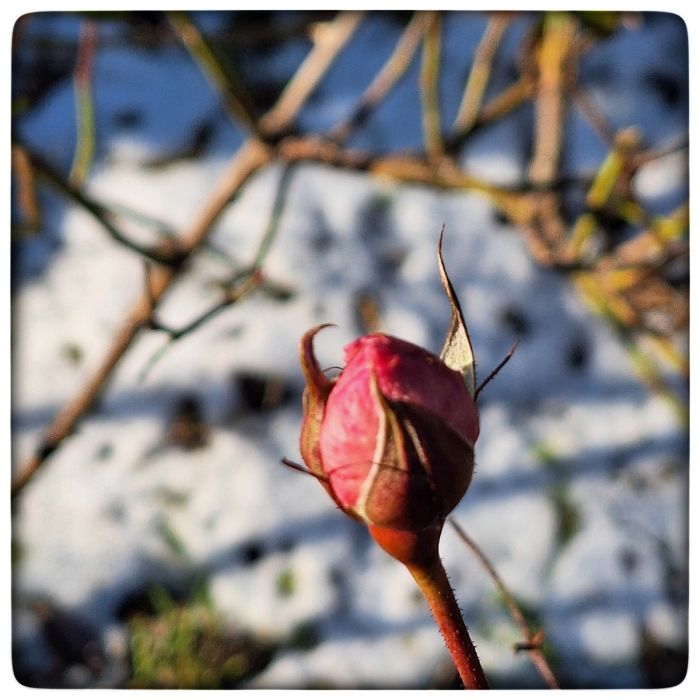 Auch wurde ich gefragt, wie das mit den Rosen und dem Frost ist. Nun, ich muss sagen, den Rosen ist der Frost herzlich... Sie überstehen nicht nur eisige Temperaturen, sie bilden gar Blüten und Blätter wo aus anderen Pflanzen bereit jedes Leben zum erliegen gekommen ist.
