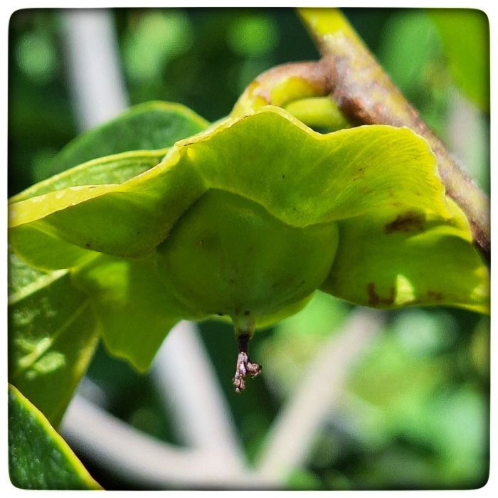 Auch die Kaki erfreut mit Früchten. Ob sie bis zur Reife durchhalten? Wenn der Sommer so weiter geht bestimmt.