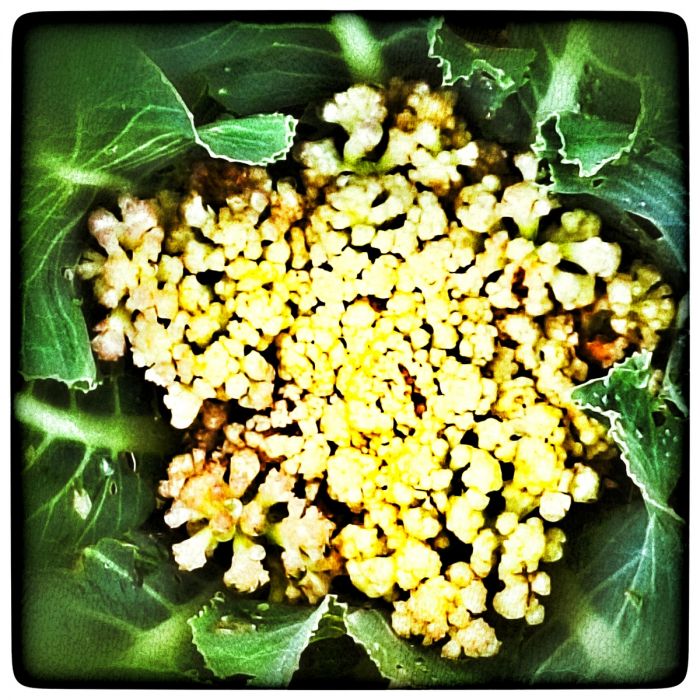 Ich habe mich oft gefragt, warum ein Blumenkohl seine Röschen gerne und lange versteckt. Wenn man - wie ich - gerne vergisst, welchen Kohl man wo gepflanzt hat, dann stellt einen der Blumenkohl lange vor ein Rätsel. Der er entwickelt keine Knolle wie der Kohlrabi, keinen Kopf wie der Weißkohl und bekommt auch keine Farbe, wie das Blaukraut. Erst ganz spät teilen sich die großen Blätter und geben ihr Geheimnis preis: Wunderbar weiße und leckere Röschen.