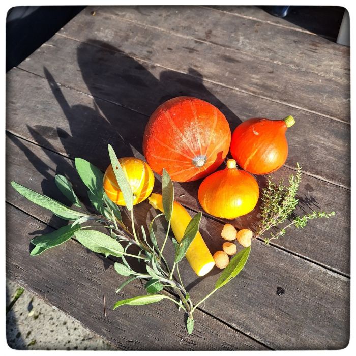 Ein bisschen betrübt es mich... dass nur die Nachbarn was zu ernten haben. Was mich freut, die Nachbarn mögen keinen Kürbis.
