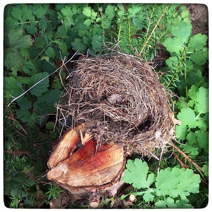 Wenig verwunderlich, wenn man einen Baum fällt und darin ein Vogelnest findet. Ohne Vogel darin. Weil man fällt keine Bäume in der Brutzeit. Danach schon. Weil so einen Scheiß wie eine Eibe, die will man los werden.