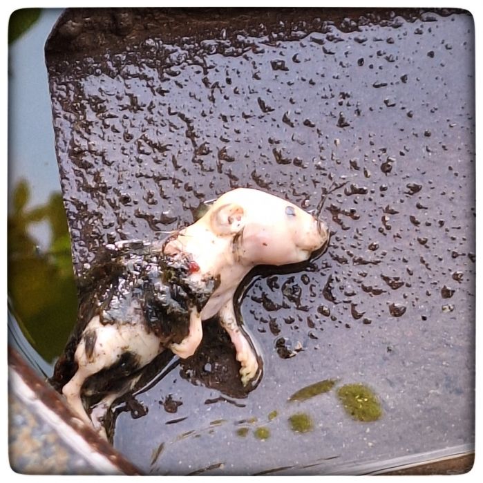 Manchmal taucht auch etwas in der Regentonne auf. Das ist nicht schön. Und riecht auch nicht schön. Kann ich euch sagen. Aber so ist der Lauf der Dinge.