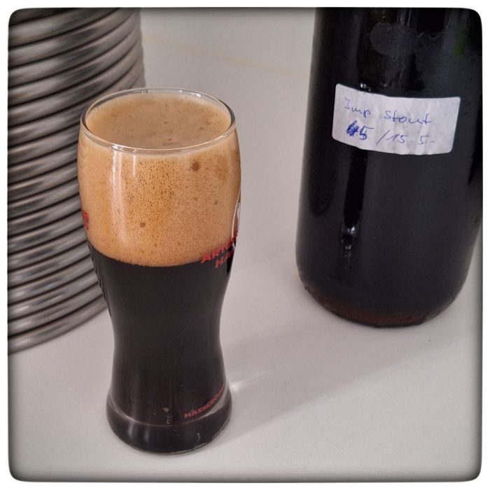 Ouweiha, da muss ich aber aufpassen. Das ist ja so was von süffig. Und dabei ganz klar ein Imperial Stout. Keine Frage. Da ist dunkle Schokolade drin und Kaffee auch. Und Prozente. Sicher über 7, wenn nicht 8. Die Kohlensäure umperlt die Zunge angenehm mit etwas Restsüsse und einer Aromenvielfalt... ich bin begeistert.