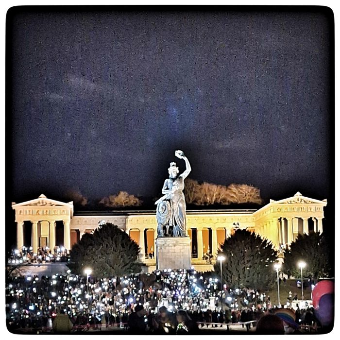 200.000 auf der Leopoldstraße, 100.000 im Lichtermeer. Das sind schon Zahlen, die sich sehen lassen können. Besonders für das recht bräsige München. Auf die Straße gehen die Münchner für gewöhnlich zum Shopping. Oder flanieren durch die Parkanlagen. Für ihre Rechte oder gegen Krieg, Klimawandel und Nazis zu demonstrieren, das stört sie in ihrer Ruhe.