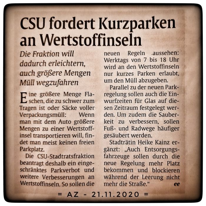 Und deswegen stehen unförmige und wenig ansehnliche Container in den Straßen und auf den Plätzen. Beschönigend "Wertstoffinseln" genannt.