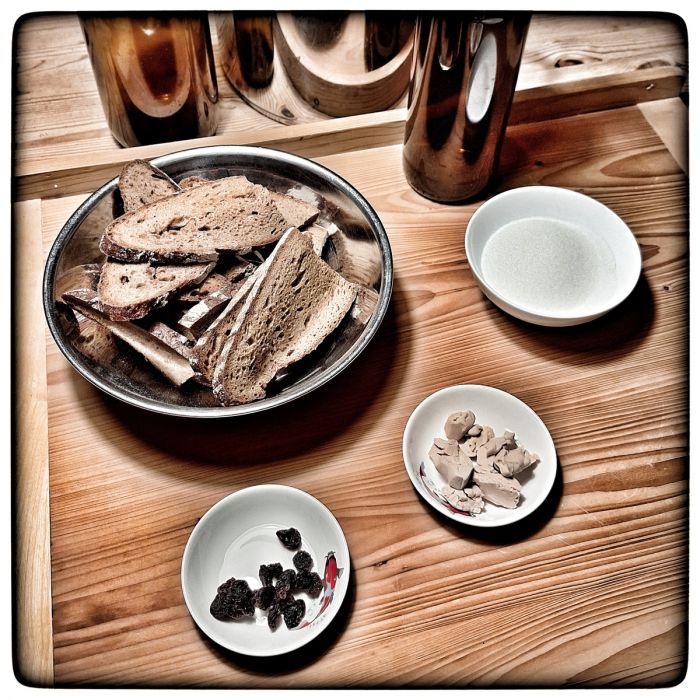 Das Brot - und da bin ich dem Wimmer recht dankbar - habe ich geschnitten bekommen und für eine halbe Stunde bei 180° in den Ofen geschoben. Die Scheiben dürfen anknuspern, sollen aber nicht anbrennen.