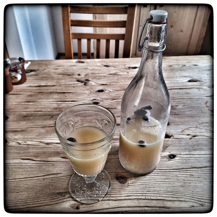 Dann wird der Sud mit der Hefe und dem Zucker ordentlich verrührt und zur Gärung bei Seite gestellt. Nach sieben bis acht Stunden wird in Flaschen abgefüllt. Die Flaschen kommen in den Kühlschrank und reifen dort drei bis vier Tage.