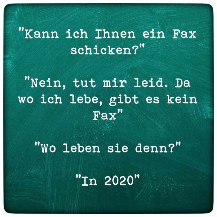 "Nein, tut mir leid. Da wo ich lebe, gibt es kein Fax."