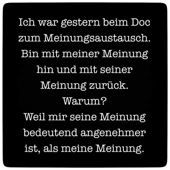 Ich war gestern beim Doc zum Meinungsaustausch. Bin mit meiner Meinung hin und mit seiner Meinung zurück.