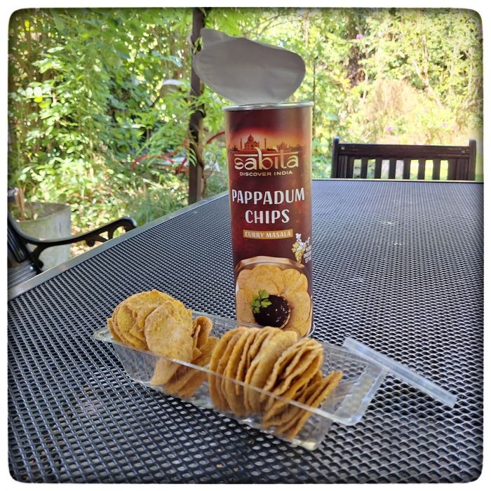 Ich lasse meinen Blick über das reichhaltige Angebot salzig pikanter Knabbereien im Supermarktregal schweifen. Dabei bleiben meine Augen an den exotisch anmutenden "Pappadum Chips" hängen.