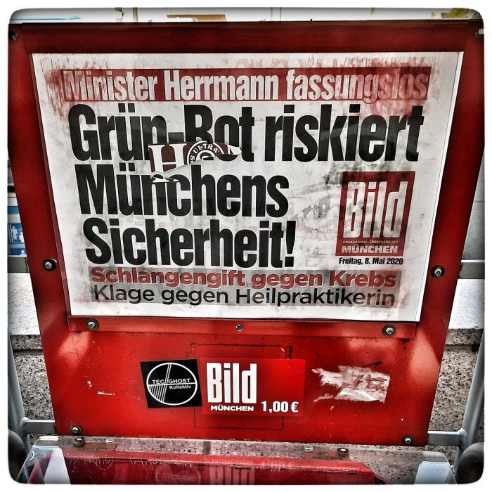 Ich habe nachrecherchiert - und das fällt mir bei diesem Ekelblatt nicht leicht - aber die Schlagzeile bezieht sich nicht auf die Nebensächlichkeit der Corona-Demos, die Gesundheit und Sicherheit ganz Münchens, vielleicht sogar ganz Deutschlands auf's Spiel setzt.